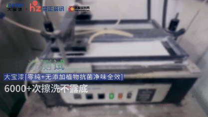 而耐擦洗性能则考验墙面的“耐用度”。在耐擦洗测试仪的反复摩擦下,大宝漆「零纯⁺」历经6000次擦洗仍不露底、不掉粉,漆膜完好无损。这一表现不仅超国家优等品标准,更能抵御日常生活中的污渍侵袭:无论是宝宝涂鸦、宠物蹭墙,还是灰尘附着,墙面都能轻松擦拭干,不仅让墙面历久弥新,还能延长墙面使用寿命达3-5年。一次施工,长久省心。